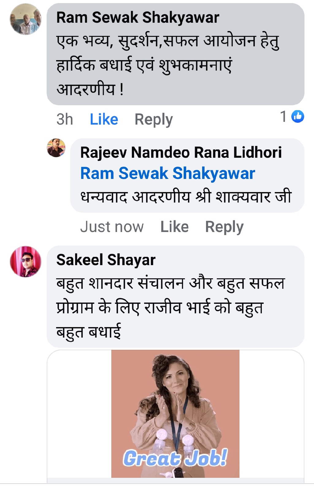 दिनांक -21-2-2025 सनातनी कवि सम्मेलन करने पर मिली प्रतिक्रिया -