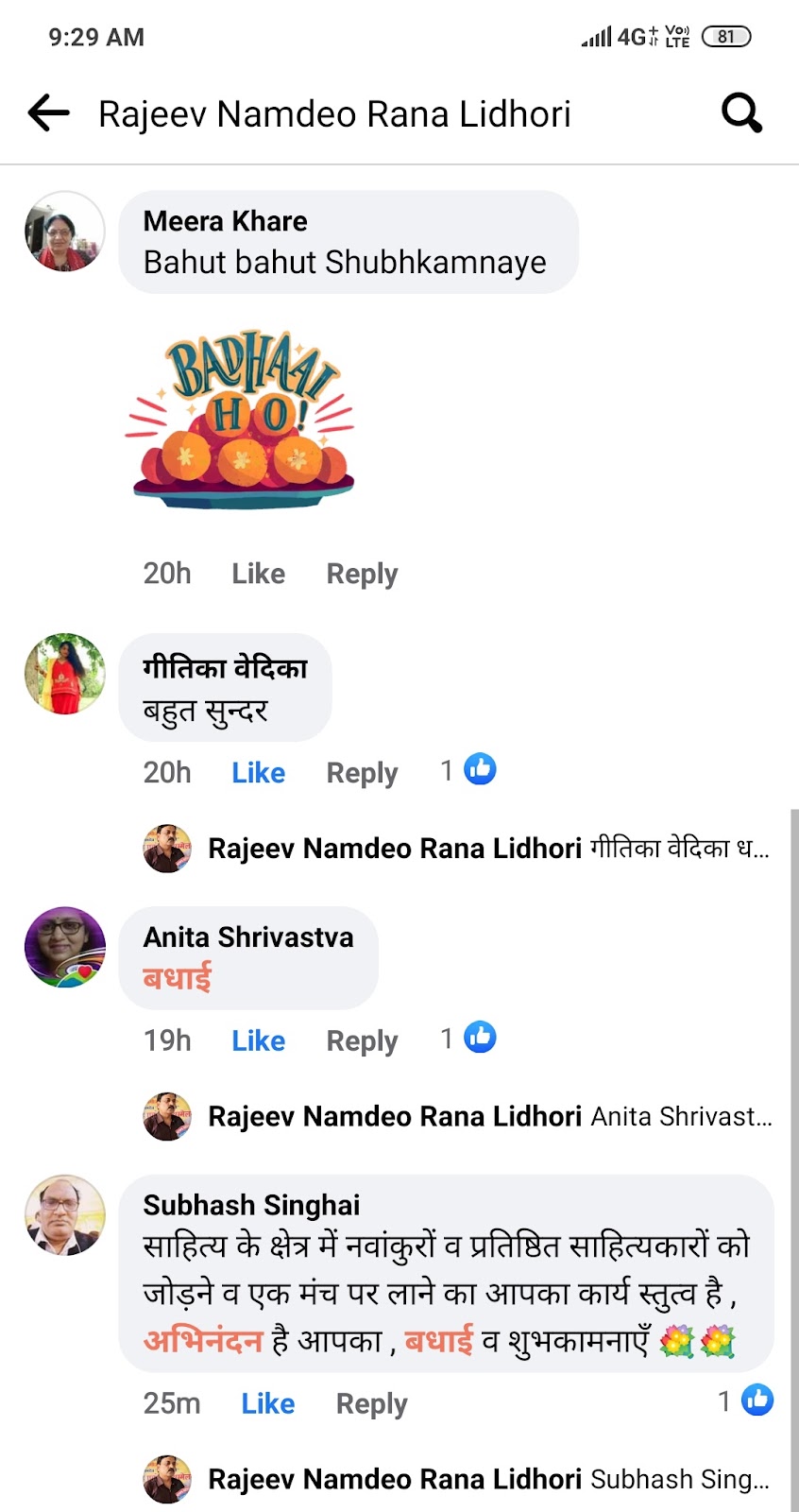प्रशंसाओं के पत्र- राजीव नामदेव 'राना लिधौरी',टीकमगढ़