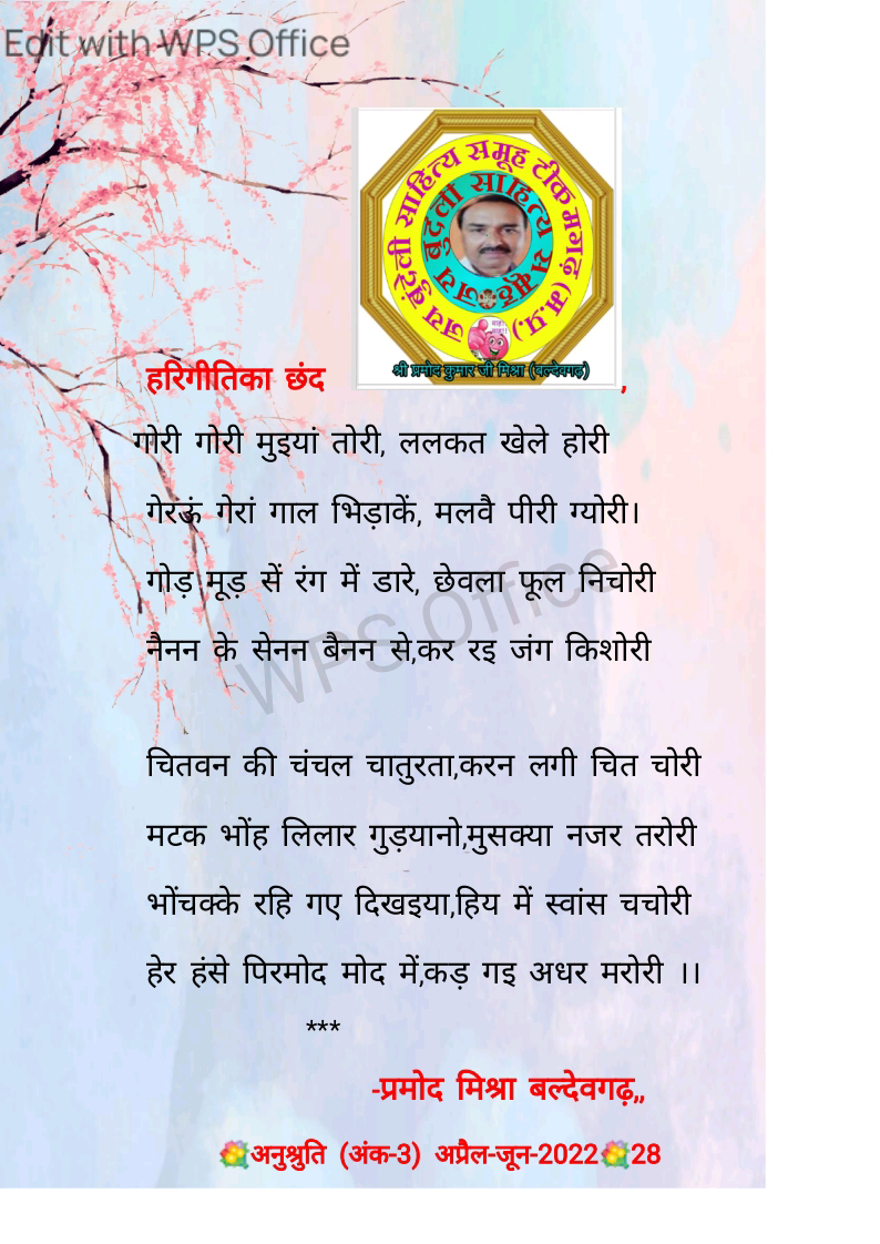2-*प्रमोद मिश्रा,बल्देवगढ़,जिला-टीकमगढ़ (मप्र)